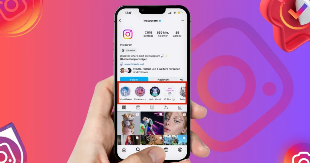 You can pin key Highlights with important information at the top of your profile. This makes it easily accessible and visible at all times, providing a lasting opportunity to showcase what matters most to your followers.