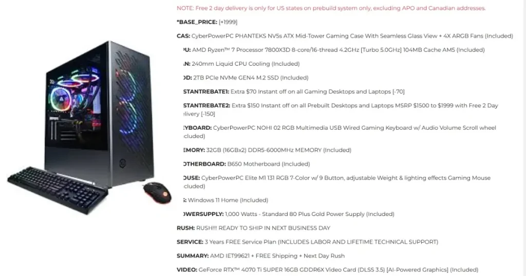 Equipped with a 14th generation Intel Core i9-14900K or AMD Ryzen 9 9950X (depending on the configuration you choose), this gaming rig delivers exceptional multi-core performance. With up to 24 cores and 32 threads, the CPU handles everything from CPU-intensive strategy games to background streaming with remarkable efficiency.