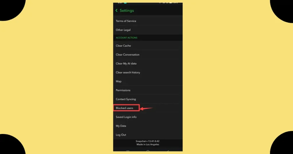 - Swipe up and find the account actions section, then select blocked.