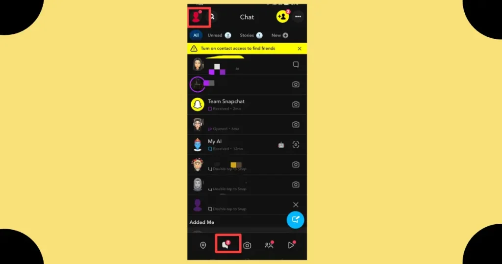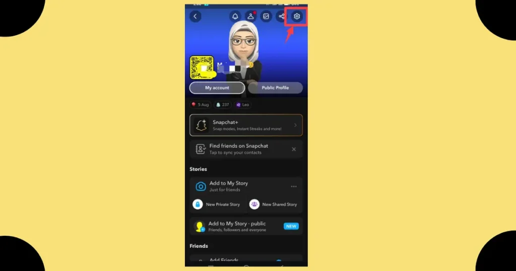 - Open Snapchat and tap your Bitmoji or username at the upper-top left corner of the screen