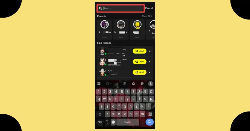 To use Snapchat’s search bar at the top of the chat screen, simply enter the username or name of the user you want to find or block. This search-feature helps you locate the person’s profile quickly through the app’s interface and navigation tools.