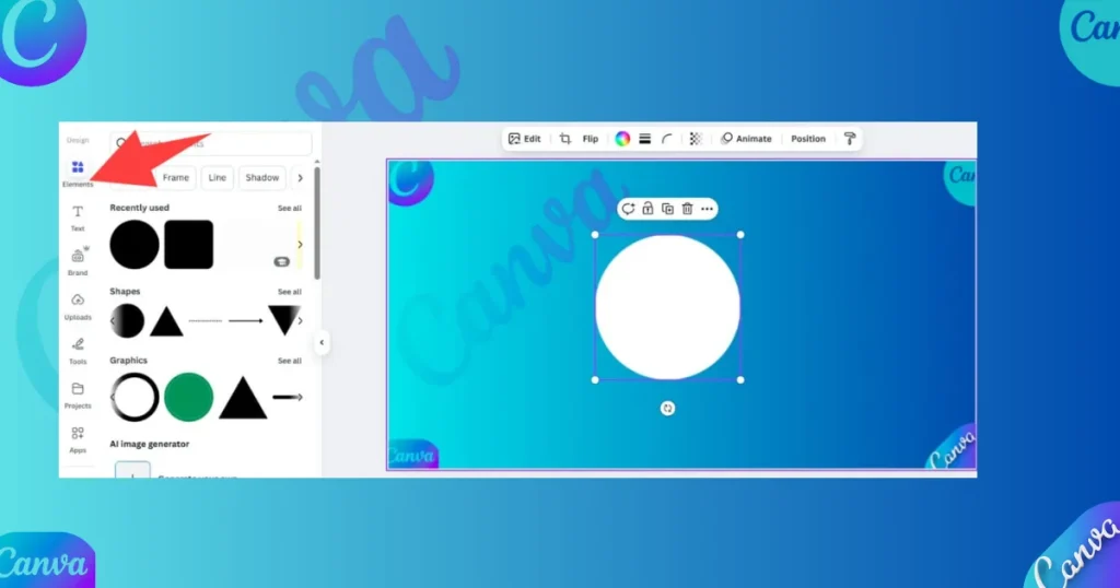 To fill an element in Canva with color, select the element, then click the color icon (usually a square with a rainbow or color gradient) in the toolbar. Choose from the suggested colors, or select “Add a new color” to pick a custom one, including gradients. You can also use the eyedropper tool to select a color from an existing element in your design.