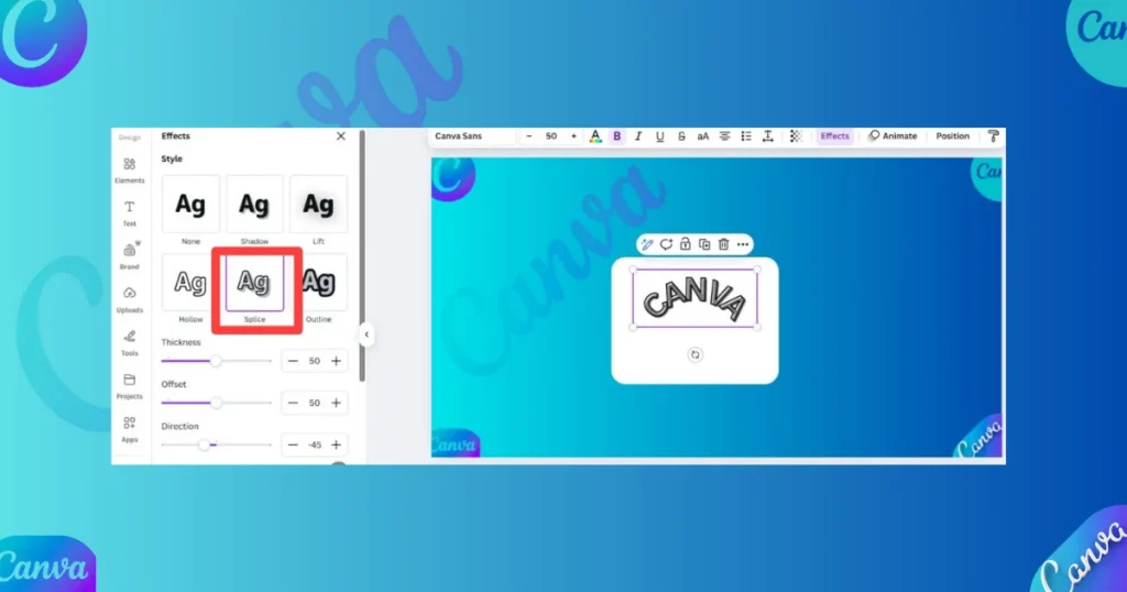 You can also layer additional effects from the same panel, like the ‘Splice’ option, to enhance your text.