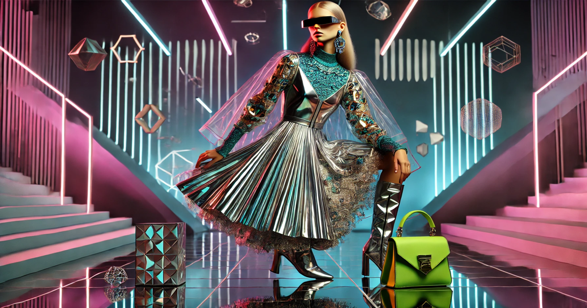 The predominant colors include metallic shades, vivid neons, and iridescent finishes, creating a futuristic yet advanced feel for fashion lovers seeking the extraordinary.Meanwhile, textures shift between smooth and reflective surfaces, while tactile materials with self-repairing and stain-resistant properties show off the latest advances in nanotechnology.
