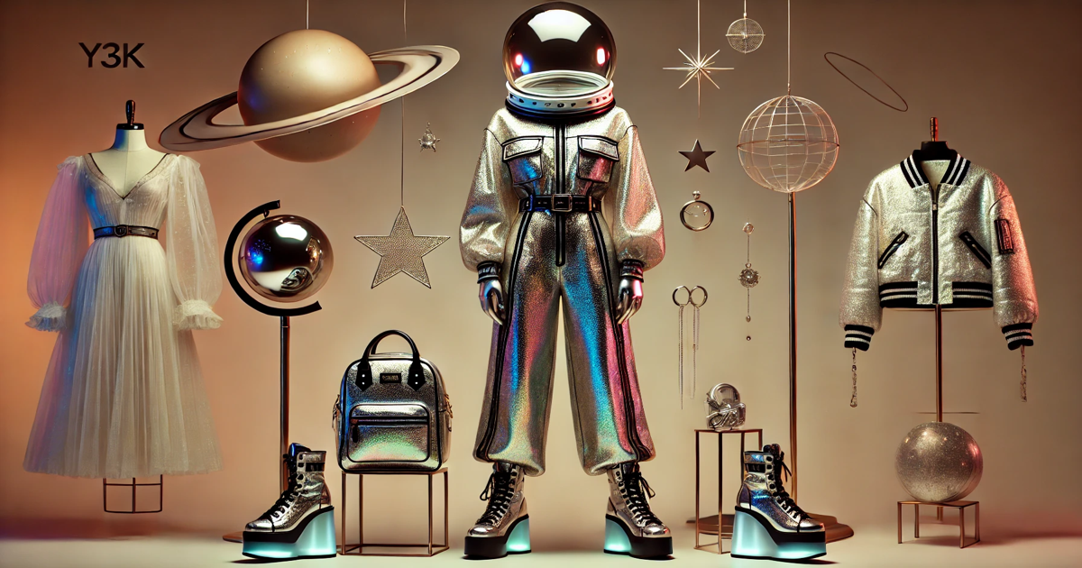 Y3K is a futuristic fashion theme inspired by the year 3000, combining advanced technology, sci-fi aesthetics, and cyberpunk influences. It blends cutting-edge materials, like metallics and smart fabrics, with bold, innovative designs to create a look that feels both futuristic and otherworldly. The theme celebrates a vision of the future where fashion merges seamlessly with technology.